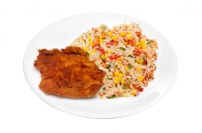 Felul 2: Șnițel e porc și orez cu legume