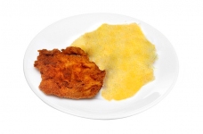 Felul 2: Șnițel cu piure de cartofi și orez cu legume
